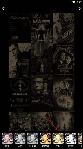 4、这里以怀旧滤镜为例,该滤镜特效富有浓郁的复古美感,用户也可依据个人喜好和实际需求,挑选自己钟爱的滤镜类型。