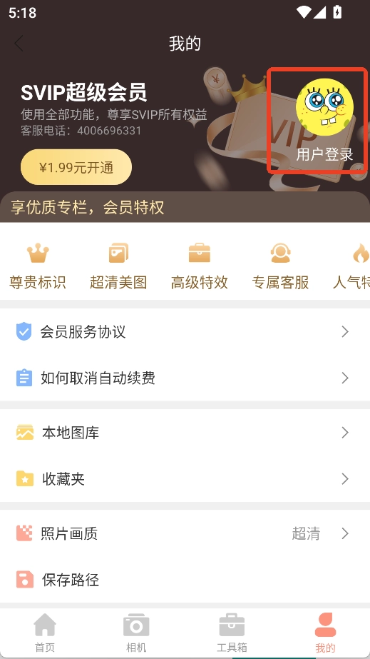 1、进入美颜自拍神器相机后,点击右下角的头像图标