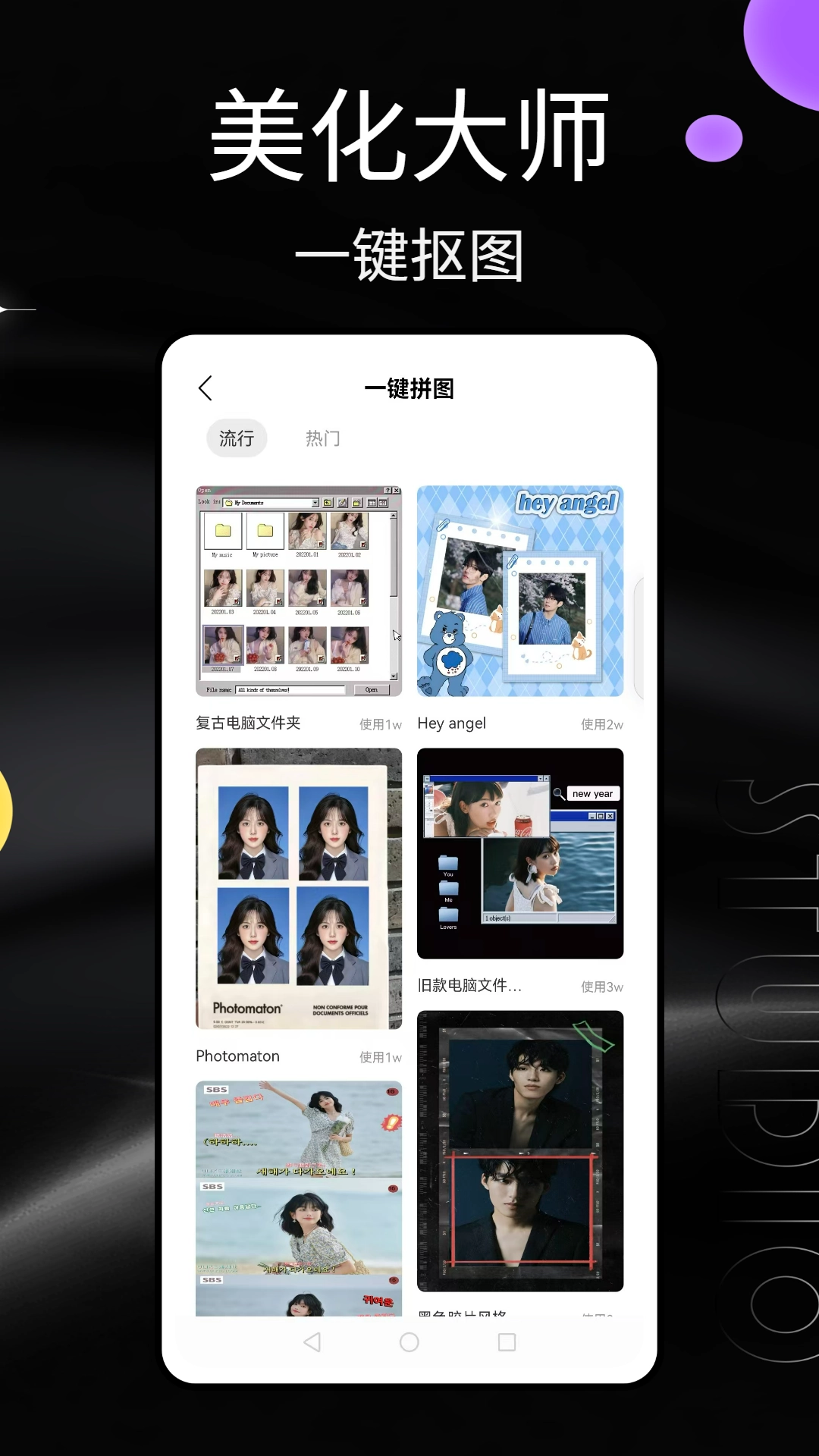 马赛克相机作为一款多功能修图工具,集成了丰富的图片美化功能,包括文字擦除、水印去除和智能抠图,能够帮助用户快速提取所需图像内容,并一键替换照片背景。此外,它还提供宫格切图、照片动漫化、一键拼图等实用功能,同时支持老照片的高清修复,满足多样化的修图需求。