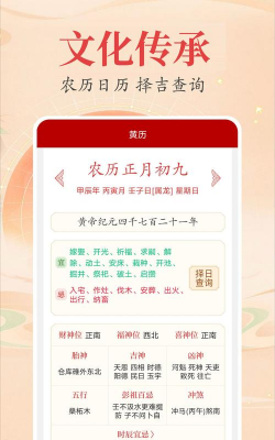 5.黄历功能:每日呈现黄历相关内容,涵盖吉凶判断、星宿方位、适宜与禁忌事项等信息。