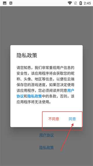 进入软件后,会弹出《隐私政策》提示,点击“同意”按钮即可继续使用软件功能。