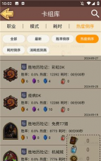 2、点击“卡组”选项,这里为用户准备了上万套卡组,并且会持续高效更新新卡组,玩家能够随时随地查看、收藏自己心仪的卡组,还可以将其分享出去。