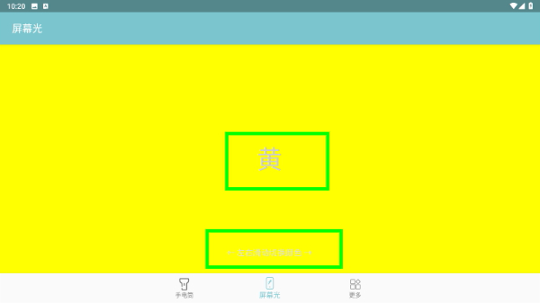 4、在屏幕光模式下左右滑动,能够把背景颜色切换成“黄”色,以此完成屏幕光颜色的调整操作。