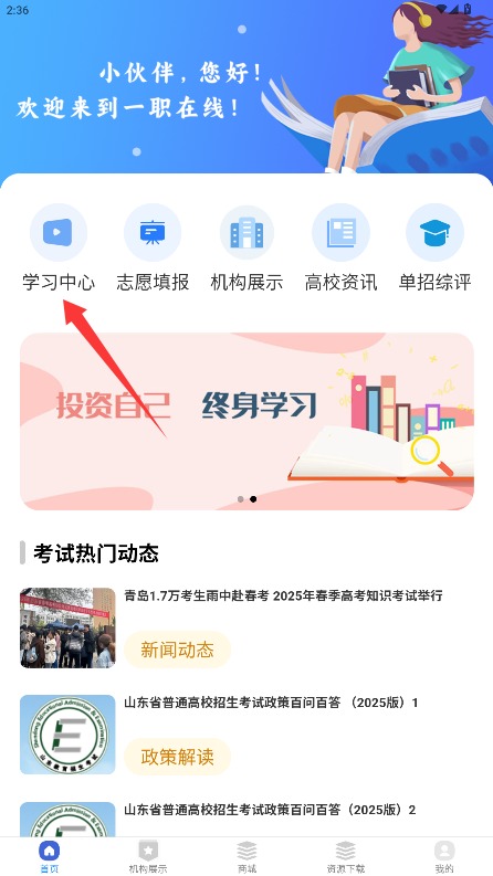 4、进入主页面后,点击学习中心模块,就能开始浏览并学习相关的专业知识与技能课程了。