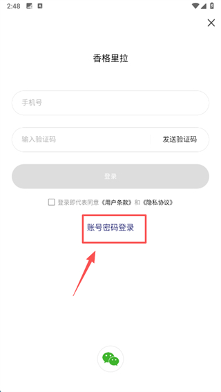 4、在该页面填写手机号与密码,勾选同意用户条款及隐私协议后,点击登录按钮,即可完成账号登录流程。