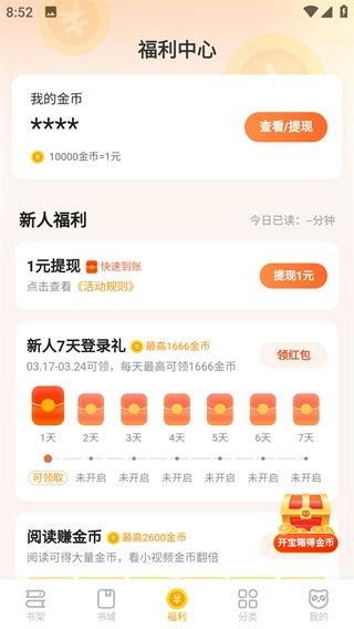 除此之外,用户还可以通过阅读赚取金币,签到和阅读可以快速提现,更多玩法等你来。