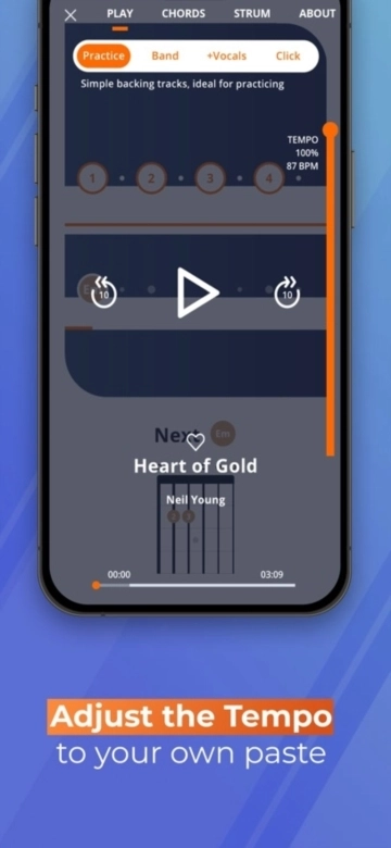 练习你的古塔尔和弦并与流行、摇滚和乡村歌曲一起演奏。我们的交互式歌曲播放器专为初学者设计,具有减慢节奏或伴奏歌词和吉他和弦显示等强大功能。