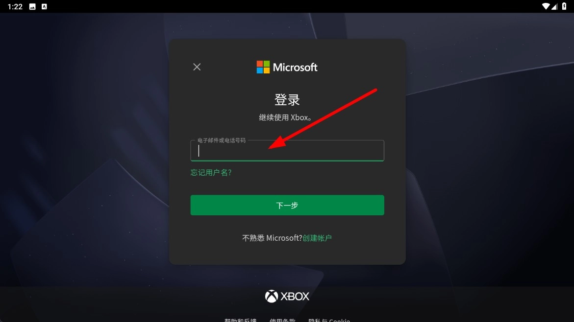 在登录页面输入电子邮件或者电话号码后,点击【下一步】功能按钮。