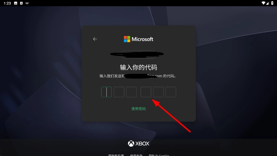 在输入代码页面,输入发送到邮箱的代码完成验证。