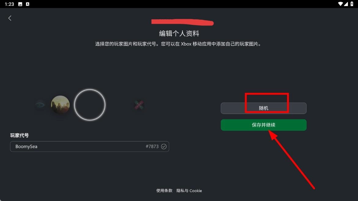 进入个人资料编辑页面后,你可以挑选玩家图片,确定好玩家代号后,点击【保存并继续】功能按钮,就能完成相关设置了。