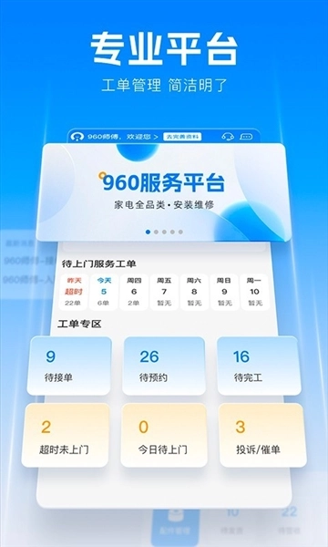 960师傅版是一款专为上门师傅打造的高效接单管理软件,集多种认证于一身,涵盖彩电、显示器等多元维修类型。安时达960联保平台以便捷的工单管理、实时跟踪与快速处理为亮点,确保师傅们的收入稳定无虑!一目了然的界面,让您轻松把握每一次服务机会,体验无忧接单的新境界。告别传统连接词,让我们一起开启您的智能接单之旅。