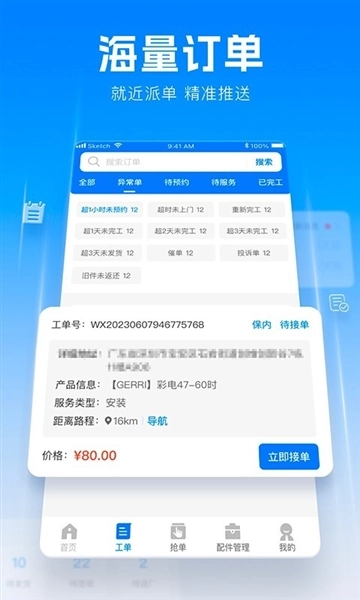 4、海量优质订单确保收入无忧,同时也让师傅轻松解决接单难的问题;