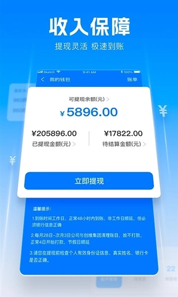 4、收益保障,快捷到账:高效结算机制,每月四次,确保收入稳定快速到账。