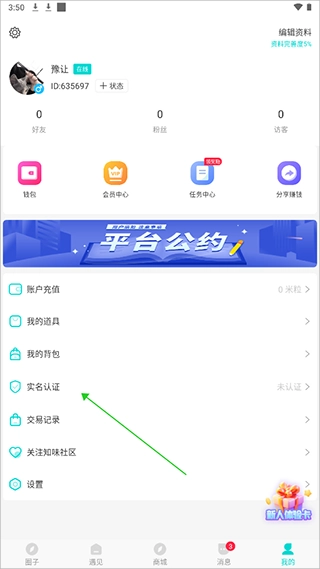 1、用户登录后需要在应用的【我的】页面中点击【实名认证】,完成认证后才可以使用完整功能