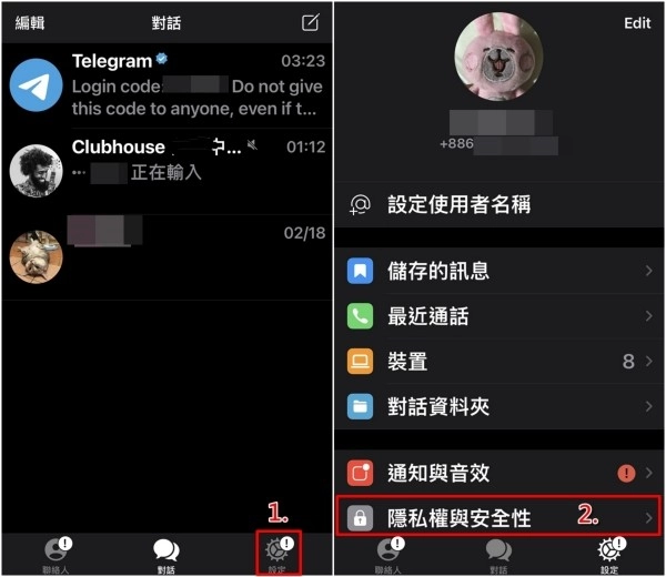 1、打开后,点击右下方的「设定」,再选择「隐私权与安全性」。