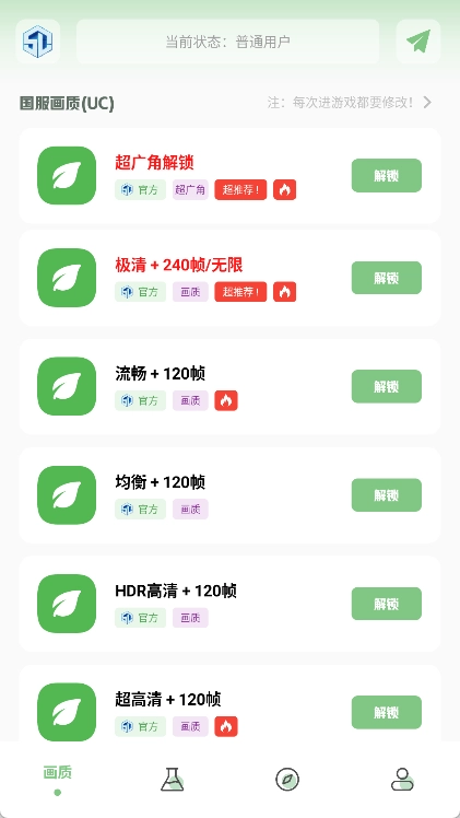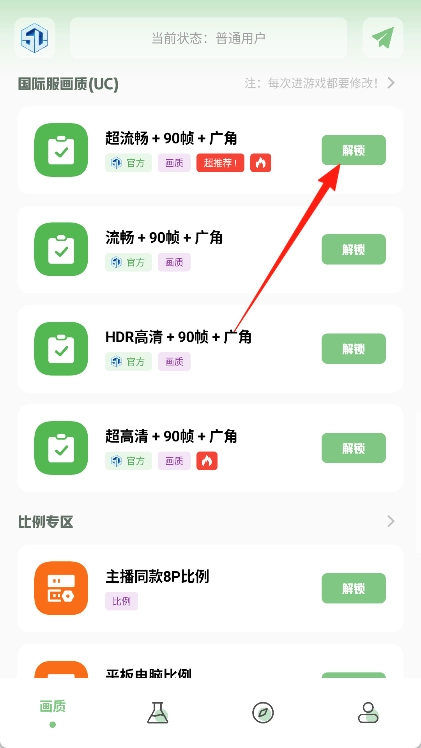 5、点击“解锁”按钮,把选中的画质方案应用到游戏里。