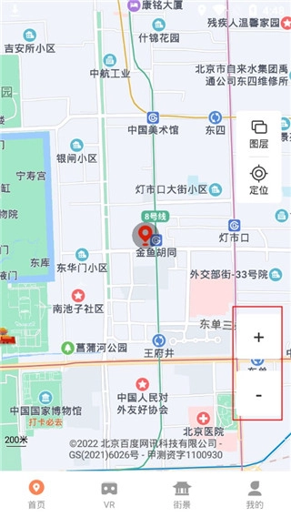 3、借助右侧的“+”和“-”按钮来完成地图的放大与缩小操作;