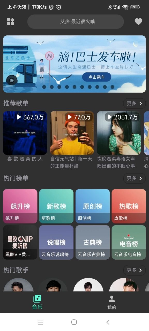 2、平台拥有海量音乐资源,随时都能畅听;每日会推荐精彩的热门歌曲,内容相当有意思;界面设计炫酷,让你可以随时享受听歌的乐趣。