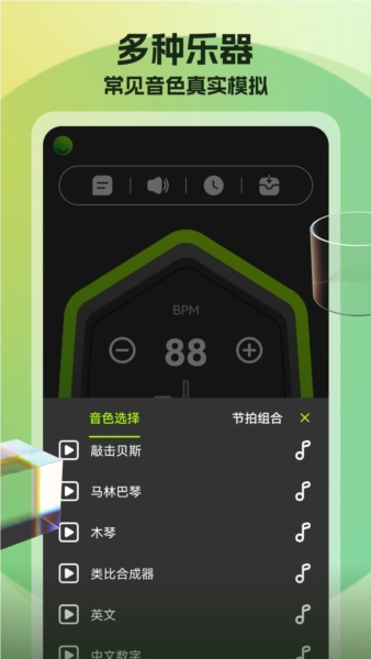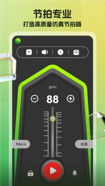1.可以体验到录音室一样的音质效果,这个节拍器是一个非常强大的工具。