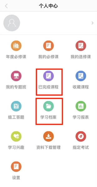 在“个人中心”页面的“学习档案”的“总体情况统计”中查看学分情况,在“已完成课程”中查看课程完成情况。