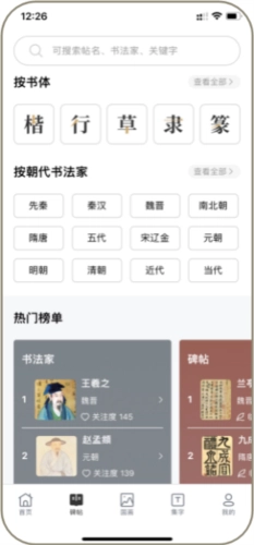 1、丰富多元的碑帖资源库:涵括行、草、隶、篆、楷等各类书法字体,能够满足不同学习层次与喜好偏好的用户需求。