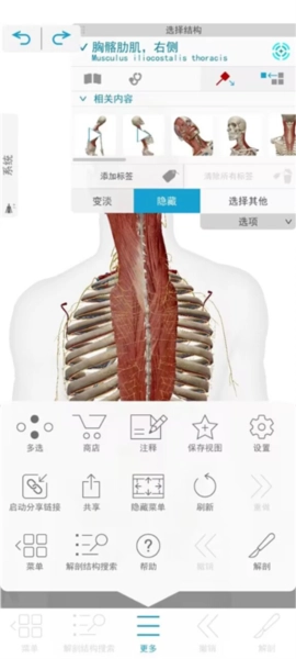 4、在任意观察点或缩放级别探索数以千计肌肉、骨骼、韧带、滑囊、神经和脉管系统的三维模型。启动任意增强现实的视图,将您的世界变成解剖实验室!
