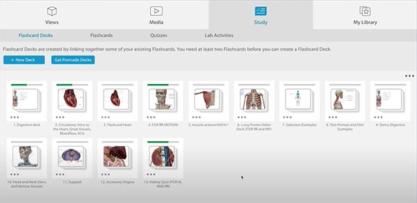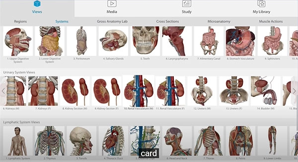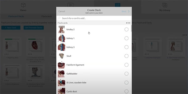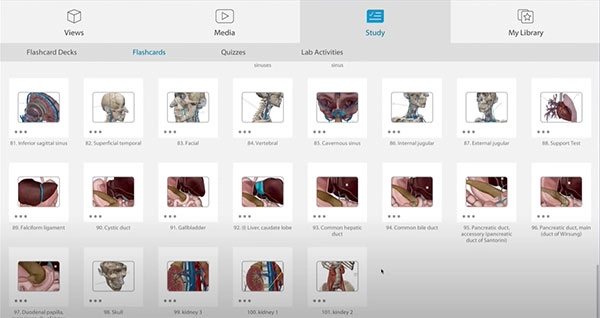 1、在人体解剖学图谱中打开任何3D视图并选择复习卡。