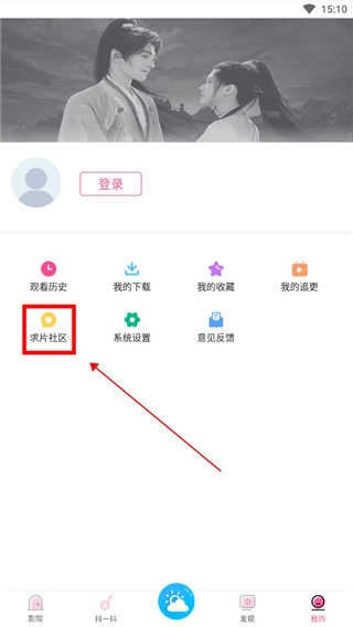 在求片社区页面,点击右上角的【+】按钮,接着选择【发起求片】选项。