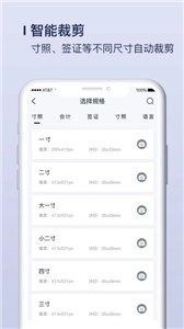 3、多种尺寸:涵盖证件照、身份证照、签证照等2265种常规规格,包含一寸、二寸(两寸)等多种尺寸的照片