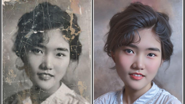 1、一键焕新老照片:上传有破损的黑白旧照,借助智能技术进行修复与上色,让老照片重现色彩、焕发活力。