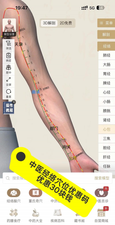 1、在男性、女性的3D人体解剖模型中,精准呈现中医经络穴位与骨骼、肌肉、血管之间的关联,借助进针动画直观演示针灸操作流程,助力学习者快速查询穴位,提升学习效率。