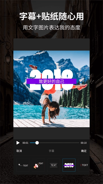 1、【自由创作】视频、照片、音乐、字幕、贴纸可随心组合,自由进行编辑。
