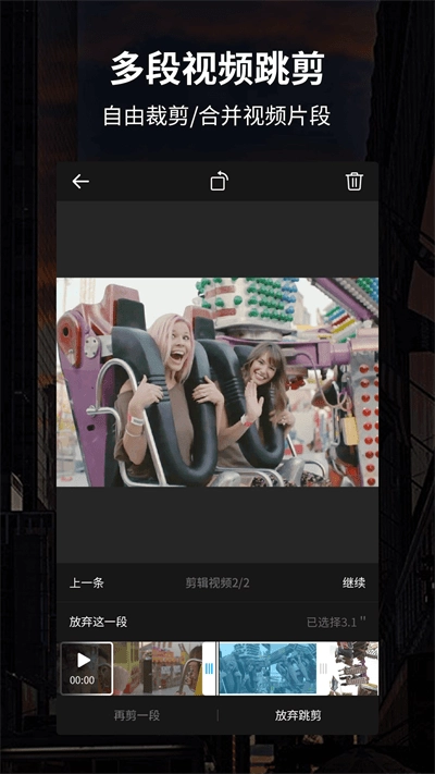 2、【多段跳剪】可自由裁剪视频的任意片段,支持对多个视频进行剪辑操作,能快速去除冗余部分,只保留其中最精彩的内容。