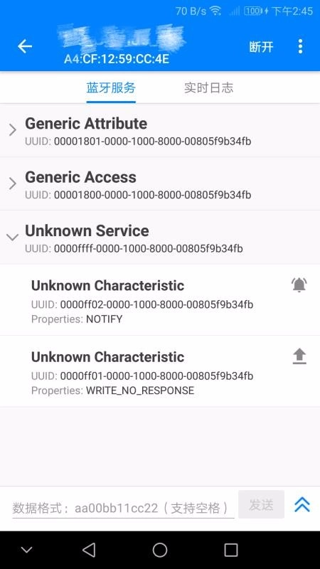 4、连接成功后,树形结构会清晰呈现所有服务、特征的uuid以及特征属性,便于用户对特征执行读写操作、开启或关闭通知功能,还能进行mtu设置等相关操作。