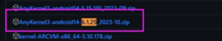 1、首先在github上找到与你设备内核版本一致的AnyKernel3包。比如小米14Pro的内核版本是6.1.25-android14,就找版本号相同、名称前带有AnyKernel3标识的包。