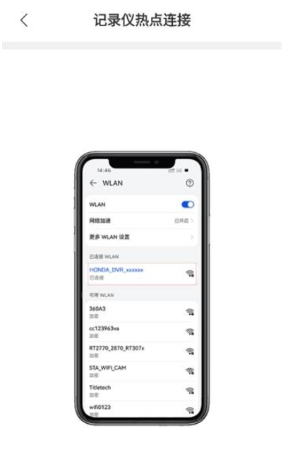 1、打开手机的WLAN功能,在搜索结果中找到记录仪的热点“HONDA_DVR_XXXXXX”。