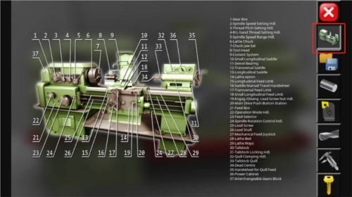 1、打开车床模拟器手机版,进入应用主界面,选择【小车床】图标,可查看机器的每一个部件,