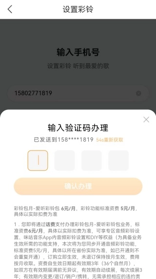 4、输入手机号码获取验证码,点击确认办理按钮,即可完成设置。