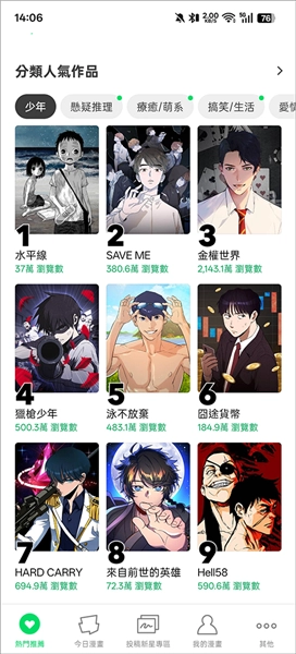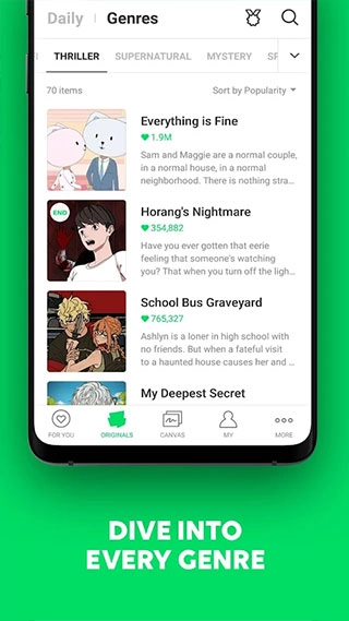 探索全球规模最大的网络漫画资源库,这里收录了动作、爱情、惊悚等丰富多样的题材。