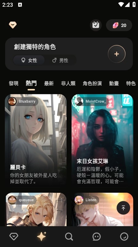 1、拥有一个涵盖多种风格和类型的虚拟角色库,无论是陪伴型、知识型还是娱乐型角色,用户都能找到符合自己情感需求或兴趣点的聊天对象,提供了丰富的初始选择。
