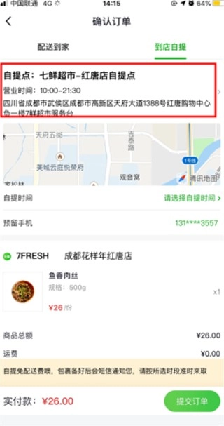 3. 确认所选门店信息准确无误后,提交订单并完成支付,就可以前往该门店提取商品了。