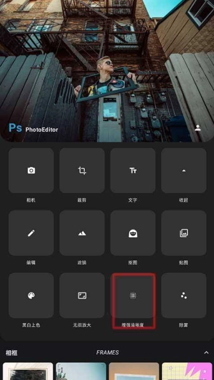 PS图片处理还配备了多样相框供挑选,能让照片更具氛围感,简洁的界面也大幅降低了干扰,使用户可以快速找到所需功能,体验相当不错。