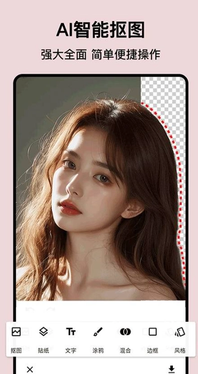 AI智能抠图功能:拥有发丝级的精准抠图水准,能够一键分离人物、动物这类复杂主体,还支持通过智能橡皮擦进行细节修正。