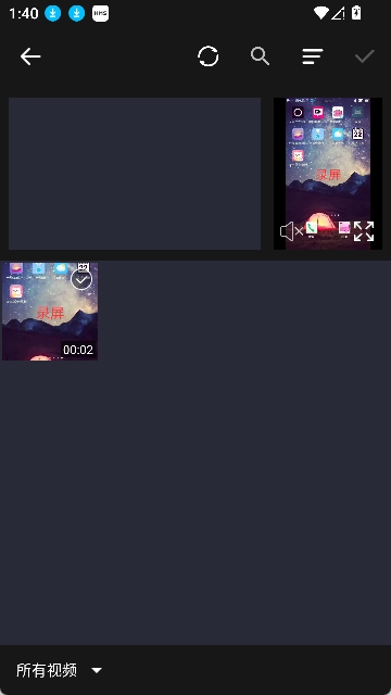 3.选择录屏素材,点击右上角的√