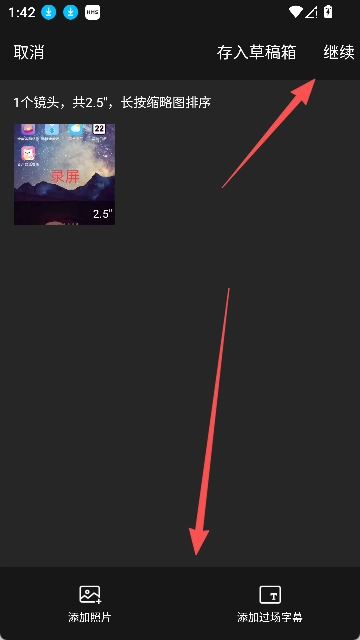 5.下方区域可根据实际需求添加照片与字幕,若无需添加,直接点击右上角的【继续】按钮即可。