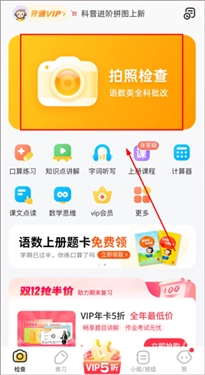安装完小猿口算App后,只需对着习题册点击「拍照检查」按钮,它就能自动识别练习册里的算术题,还会立刻给出答案,对错一眼就能看清楚。