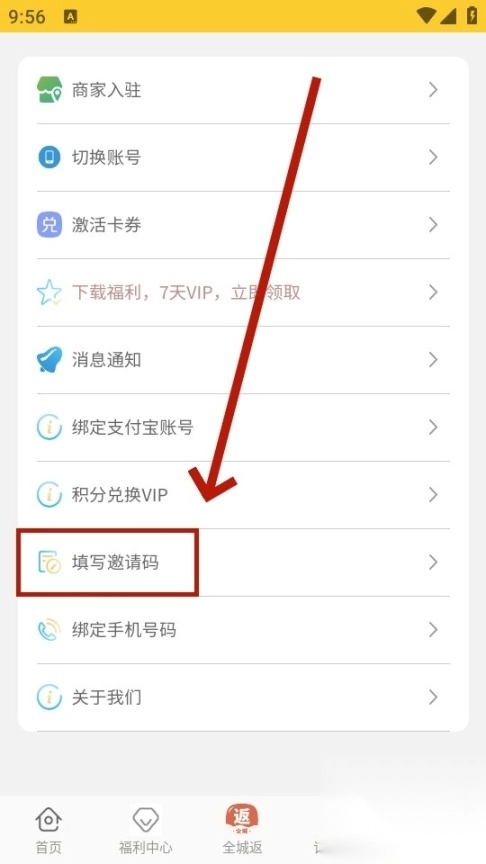 填写邀请码