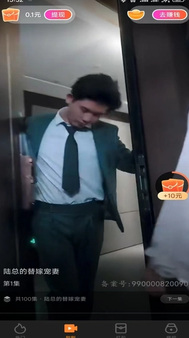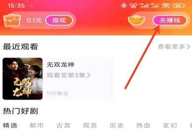 在短剧页面的顶部位置能看到“赚钱”选项,用户可点击该选项进入相关界面。