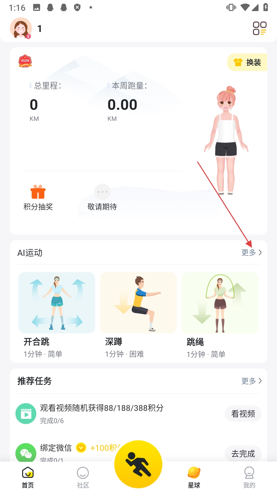 1、点击【更多】,进入智能运动选择页面。