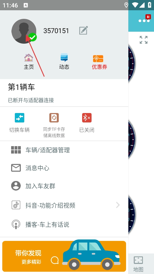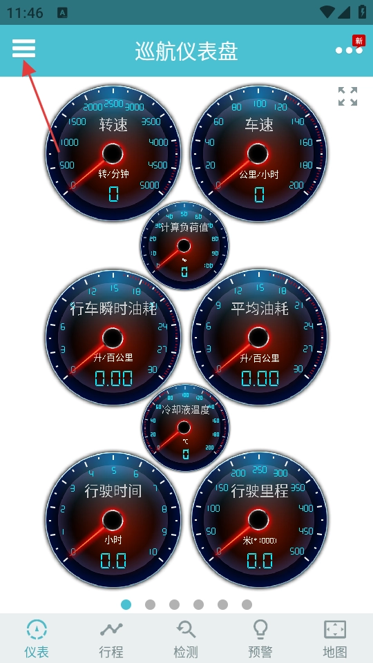 1、进入巡航仪表盘界面后,点击左上角的菜单按钮,即可展开功能菜单。